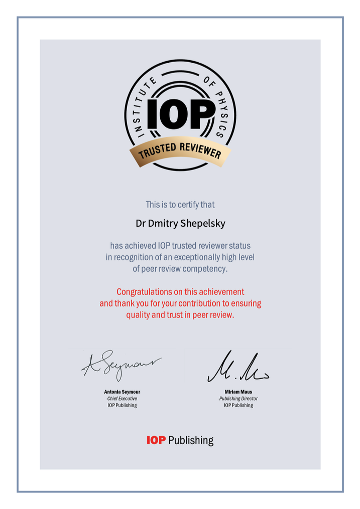 4. S. Bogdanov, D.Shepelsky, M. Kamalian-Kopae, A. Vasylchenkova and J. E. Prilepsky, Finite-Genus Solutions-Based Optical Communication With the Riemann-Hilbert Problem Transmitter and a Convolutional Neural Network Receiver, Journal of Lightwave Technology  42, no. 16 (2024),  5529-5536.